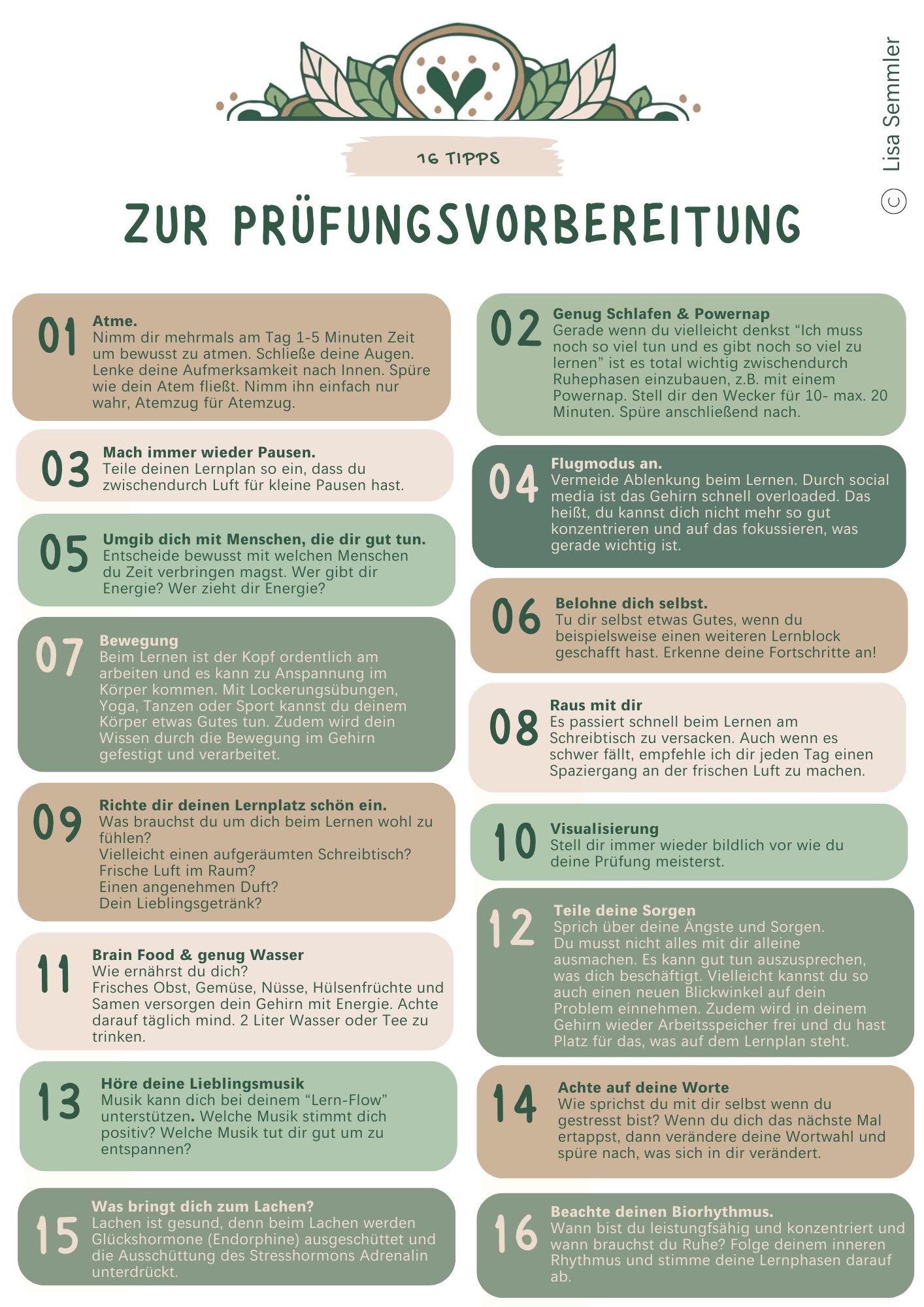 Mein Name ist Lisa Semmler. In meiner Schul- und Studienzeit war ich immer sehr aufgeregt vor Prüfungen, hatte ein geringes Selbstbewusstsein und fühlte mich immer gestresst. Aufgrund meiner eigener Erfahrungen kann ich die Probleme von Studierenden gut nachvollziehen.