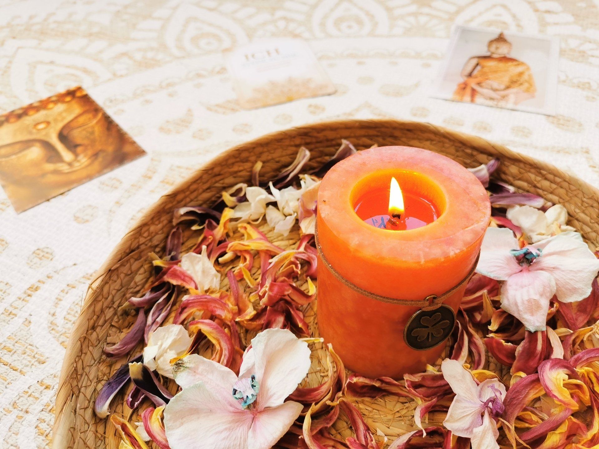 Als unterstützende Materialien verwende ich Kartensets, Musik und Musikinstrumente, wie Klangschale und Koshi sowie Naturmaterialien.
