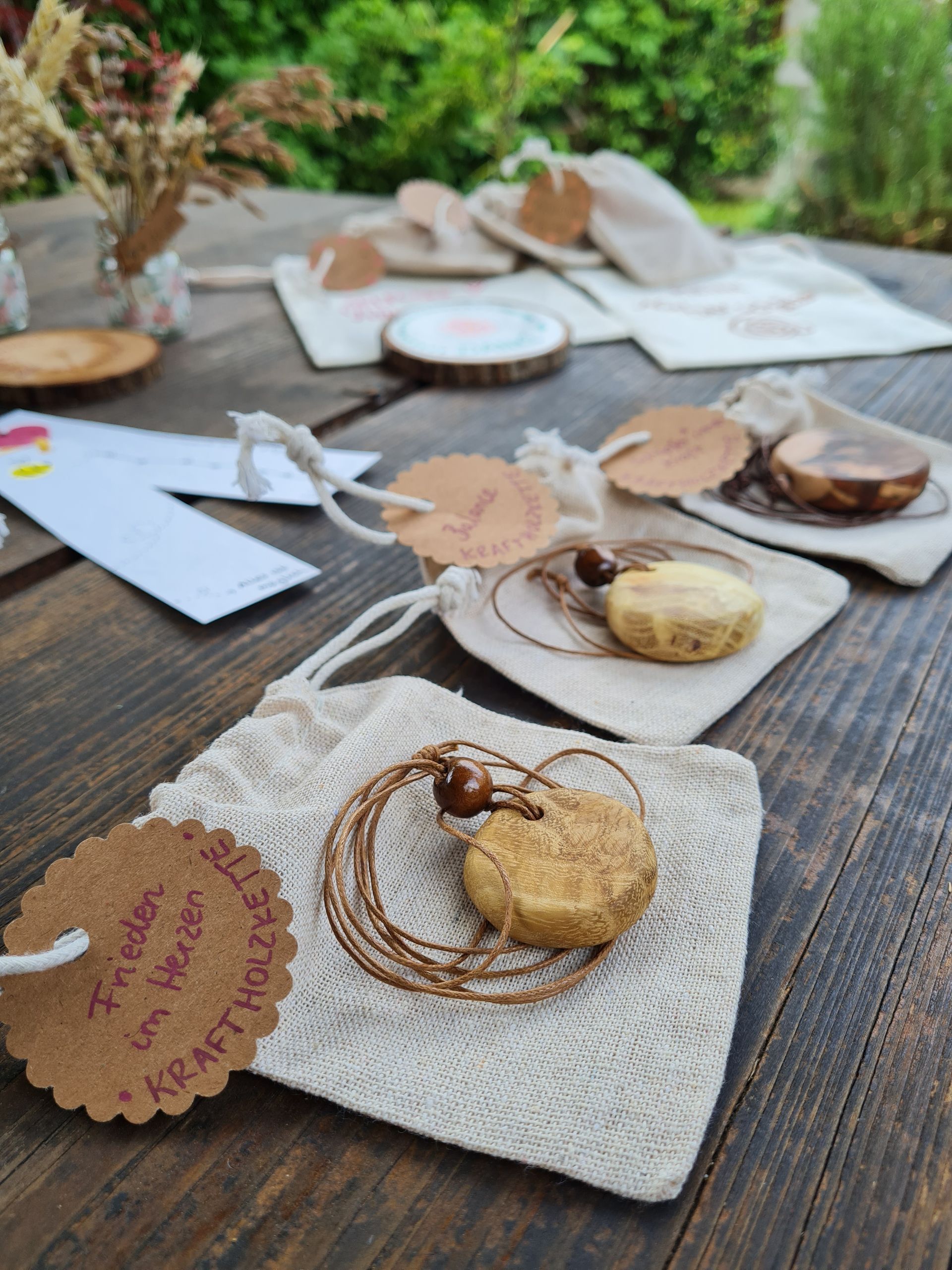 Jeder Baum hat besondere Qualitäten, die symbolisch in dem Holzanhänger "gespeichert" sind.