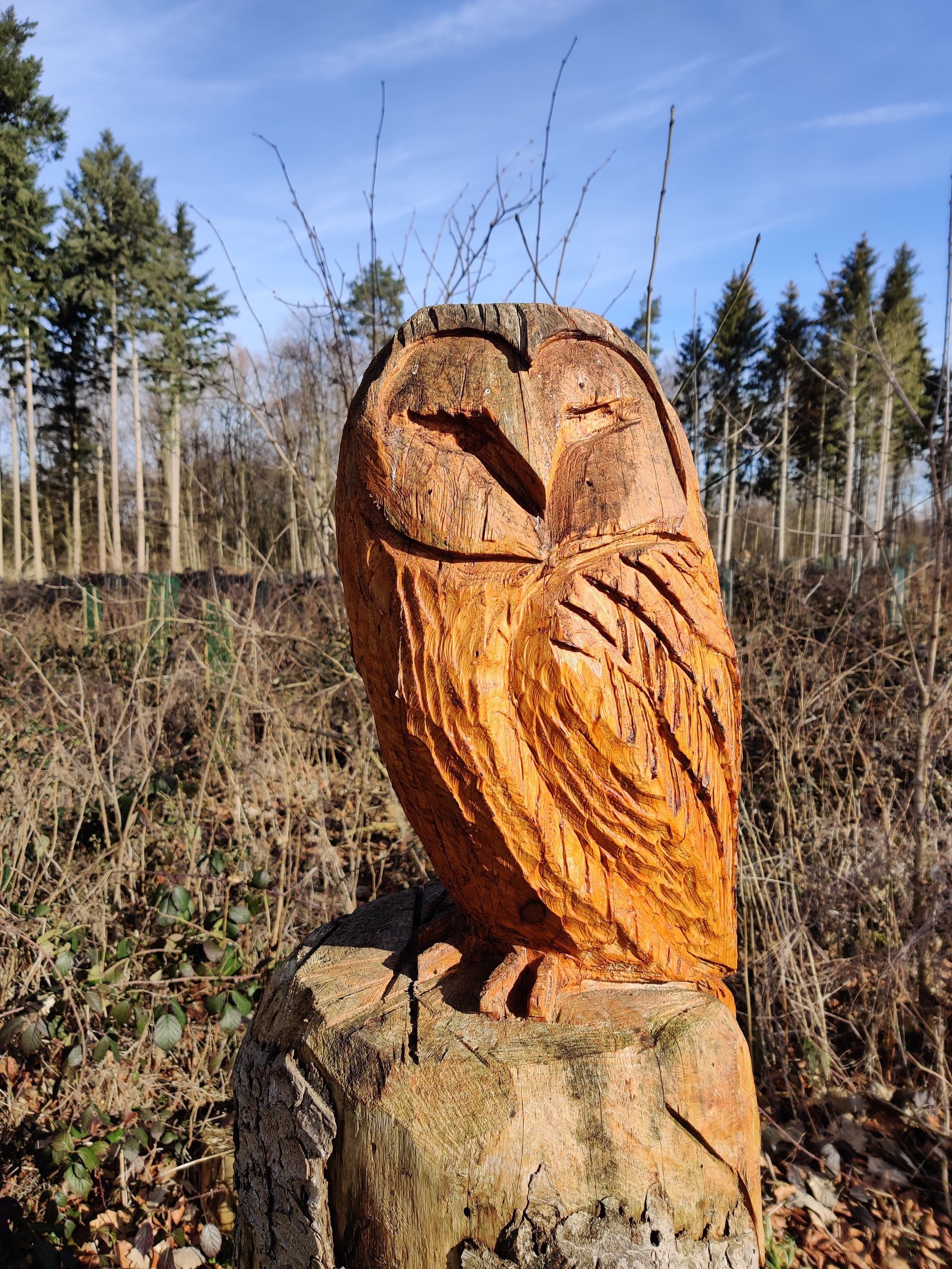 Im Villmarer Wald am Galgenberg, mit wunderschöner Aussicht auf den Taunus, hat Timo einzigartige Holzskulpturen am Wegesrand geschnitzt. Diese sind aus Überresten toter Fichtenstämme entstanden.