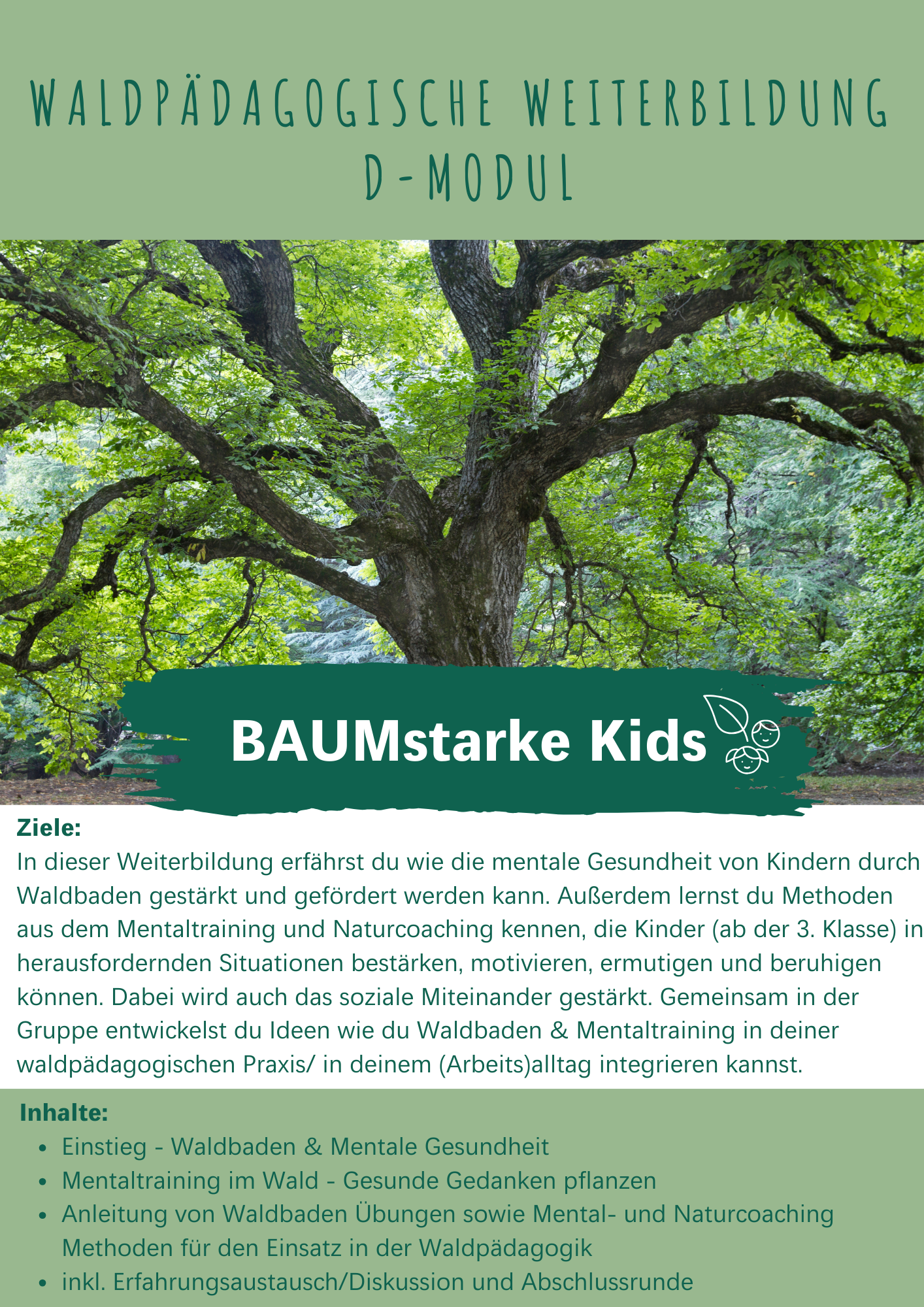 Das Modul kann unabhängig von "Waldbaden für Kids" und "Waldbaden für Kids 2" absolviert werden.