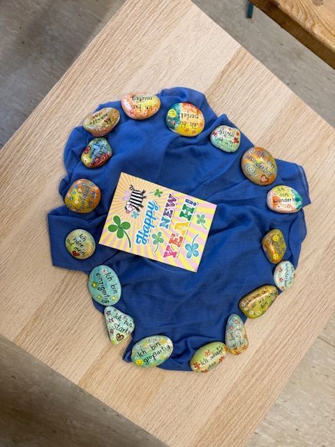 Im Moment wählt jeder Schüler/ Schülerin am Morgen einen Stein aus, der am heutigen Tag zu ihm passt.