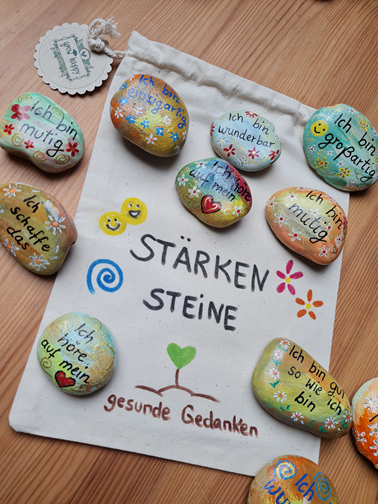 Langfristig schauen wir, ob Sätze/ Botschaften fehlen und gestalten weiter Steine selbst. "