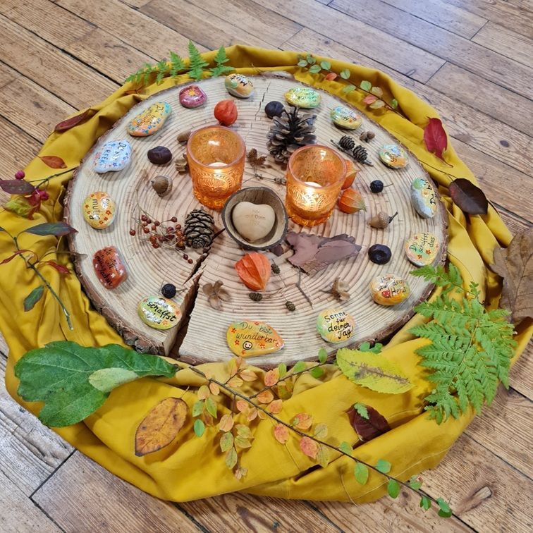 Kinder können ihre Fantasie nutzen und mit dem Baum in ein Gespräch treten. Die dabei wahrgenommenen positiven Gefühle wie Ruhe, Stärke oder Entspannung können durch eigene Baumbilder, die aus Naturmaterialien bestehen und fotografiert werden, in den Alltag mitgenommen werden, um in schwierigen Momenten eine positive Gedankenstütze zu bieten.